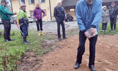 Urheilukenttä kuntoon -hankkeessa (Leader-rahoitus) talkoiltiin 11.7. yhdeksän hengen voimin kuularingin tekemisen parissa sekä mittailtiin keihäänheittopaikan mittoja.